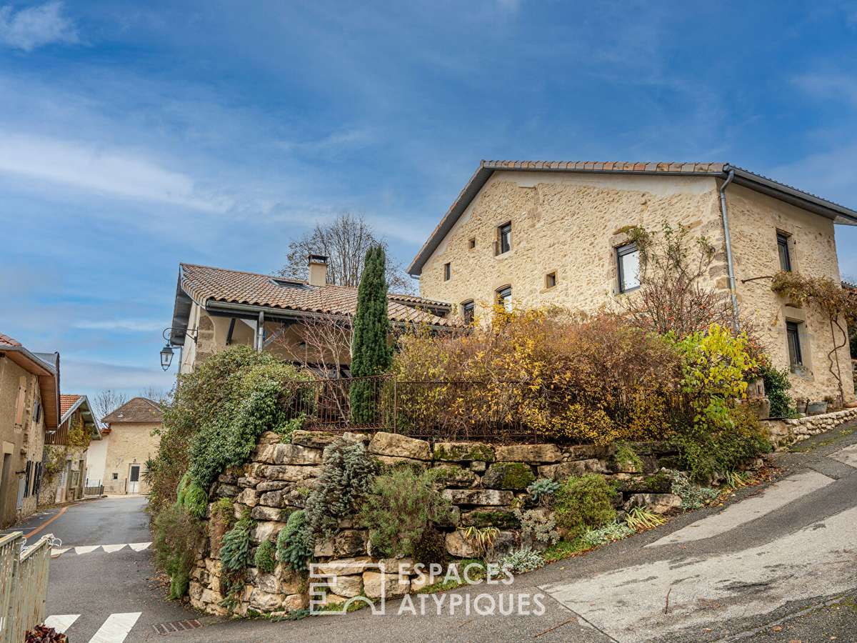 Au coeur du village de Saint-Martin-le-Colonel, au pied du Vercors, cette ancienne bâtisse en pierre entièrement rénovée déploie une atmosphère chaleureuse et singulière, où le charme de l'ancien dialogue avec une rénovation contemporaine de grande qualité.