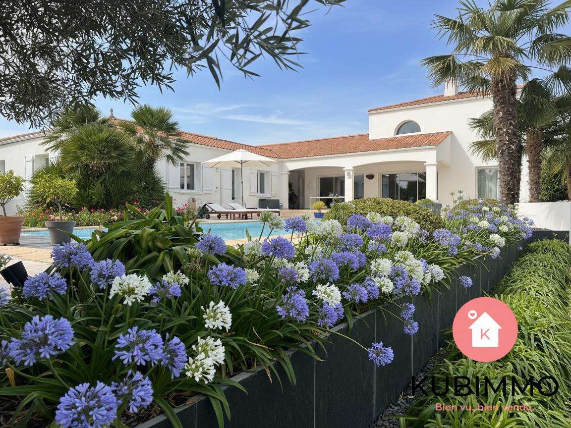 Bienvenue dans cette propriété de standing située dans un quartier prisé de Bourgenay, à deux pas du golf.La pièce principale développe près de 87 m² habitables sur un terrain de 1 570 m² orienté plein sud.Elle conjugue volumes cathédrale, lumière naturelle, vie extérieure affirmée et prestations soulignant un art de vivre d'exception.Une maison pensée pour recevoir et profiter d'un cadre rare sur la côte vendéenne.Dès l'entrée, la pièce de vie de 87 m² impose immédiatement ses volumes et bénéficie d'une hauteur sous plafond qui ne manque pas de respiration, à plus de 6 mètres, avec une mezzanine ouverte de 33 m² qui domine l'ensemble.