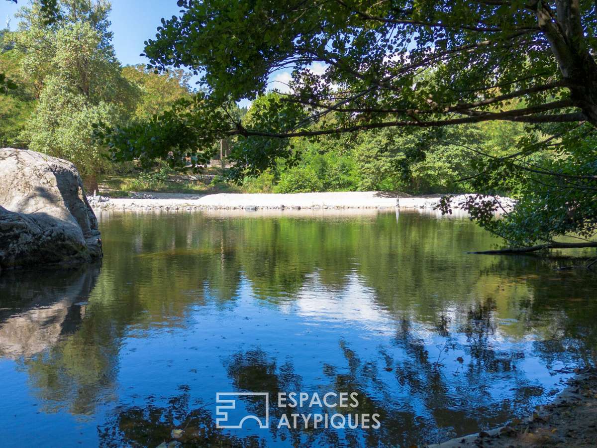 Mais l'autre atout de cet ensemble, se trouve à seulement 500 m: un terrain privé de 1500m2 en bordure de la rivière Ardèche, avec sa plage et sa partie arborée.