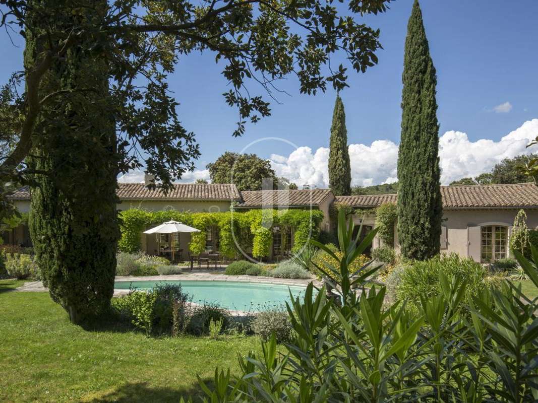 Un forage ainsi qu'un système d'arrosage automatique permets de maintenir la végétation tout au long de l'année ; le jardin est équipé d'un éclairage nocturne Différentes terrasses, parfumées de glycines entourent la maison ; 'un discret espace dîner est aménagé sur mesure sous les chênes.