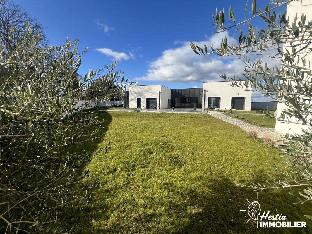 Édifiée en 2024 sur une parcelle paysagée de 1 769 m2, cette somptueuse villa d'architecte de plain-pied séduit par son architecture contemporaine en forme de U, pensée pour offrir lumière, intimité et fluidité des espaces autour de la piscine.