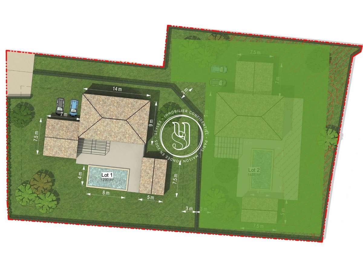 - Terrain constructible de 1 200 m² idéal pour une maison unique.