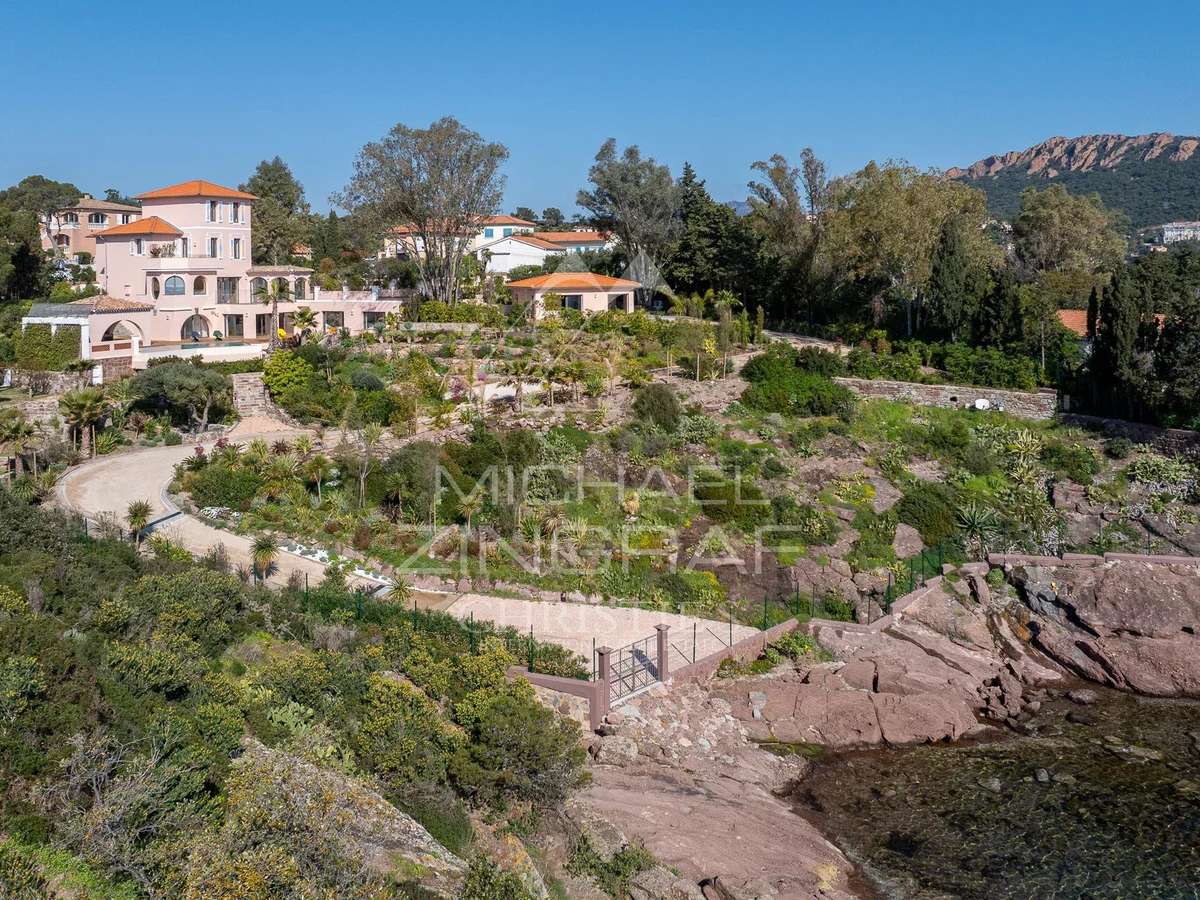 Idéalement située à Agay, entre Cannes et Saint-Tropez, cette propriété rare bénéficie d’un emplacement privilégié en bord de mer, au cœur d’une crique intime et protégée.Édifiée sur un magnifique terrain paysager de plus de 4 000 m², la propriété offre un accès direct à la mer ainsi que la possibilité d’accoster aisément avec une annexe de yacht, un véritable luxe sur la Côte d’Azur.Développant une surface habitable de plus de 380 m², la maison principale propose de superbes volumes avec cinq suites, deux élégants salons baignés de lumière ainsi qu’une cuisine conviviale ouverte sur l’extérieur, invitant à la détente et à la contemplation.Une maison annexe indépendante complète cet ensemble avec une sixième suite, un atelier et un garage pouvant accueillir deux véhicules.Exposée plein Sud, la propriété profite d’un ensoleillement optimal tout au long de l’année et incarne parfaitement l’art de vivre à la française, entre mer et nature.La rénovation de la propriété a été réalisée dans le respect des règles d’urbanisme en vigueur.