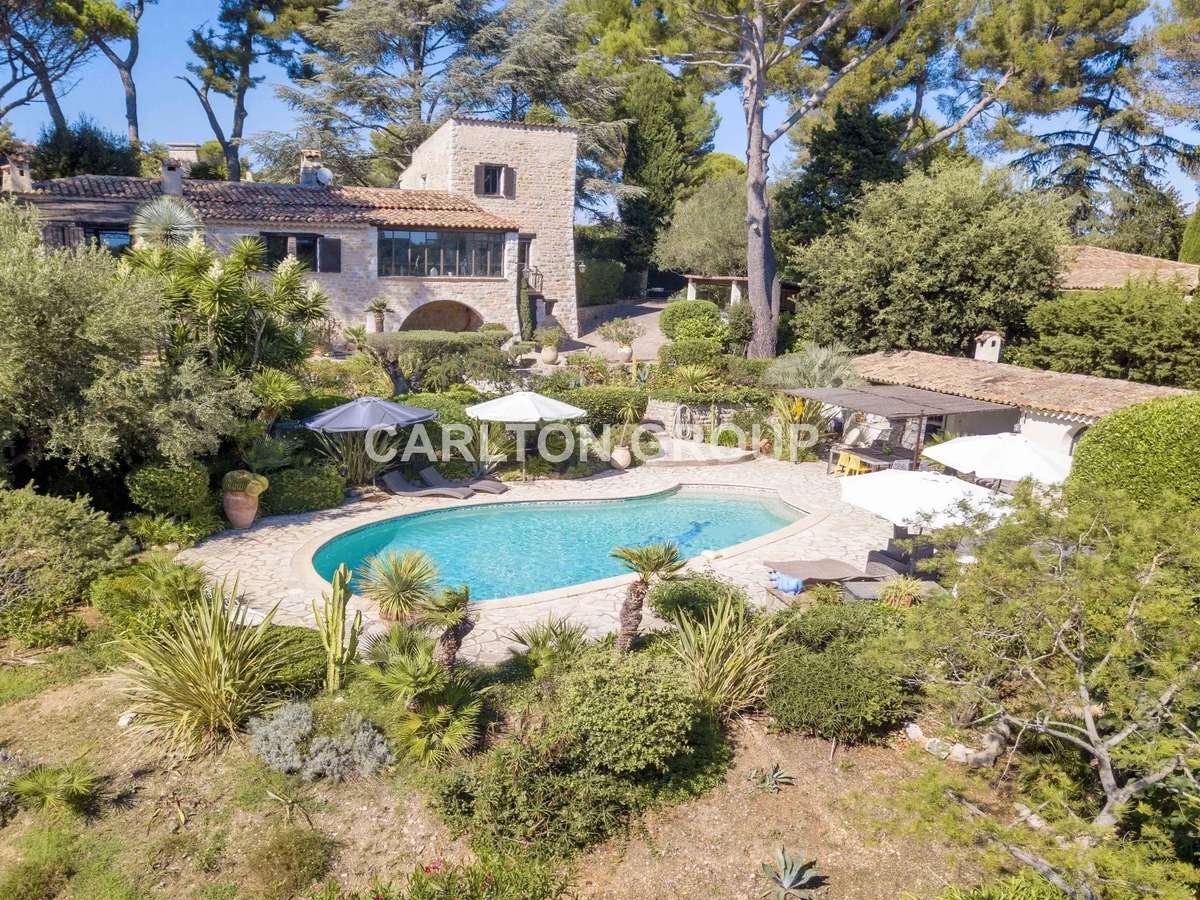 A 5 mn du village, à 10 mn de la mer et de Sophia Antipolis et à 15 mn de l'aéroport de Nice, beaucoup de charme pour cette propriété en pierres située dans un domaine fermé de prestige.