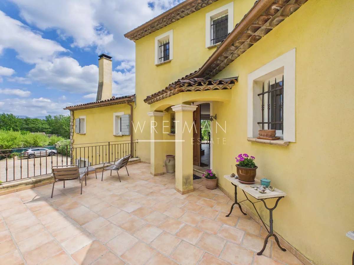 La maison principale dispose d'une entrée, d'une spacieuse pièce a vivre offrant un salon avec une élégante cheminée, ainsi que d'une cuisine équipée ouverte sur une salle à manger, donnant accès a plusieurs terrasses.