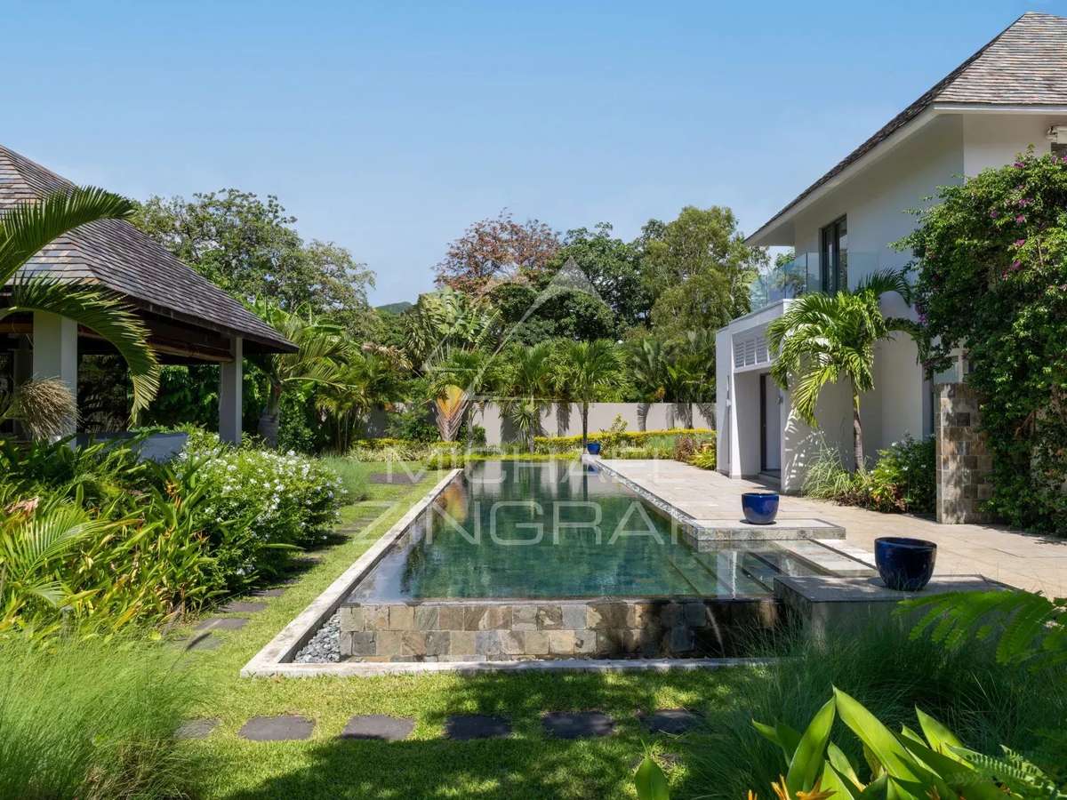 Le séjour s’ouvre sur une agréable terrasse couverte, avec un espace repas idéal pour partager déjeuners et dîners tout en profitant du cadre environnant.À l’extérieur, un kiosque aménagé au bord de la piscine invite à la détente, tandis que la villa bénéficie d’une vue imprenable sur le golf, véritable atout pour les amateurs de nature et de grands espaces.Située sur la côte est de l’île Maurice, au cœur du prestigieux Anahita Estate, la propriété profite d’un emplacement alliant calme, nature et accessibilité.